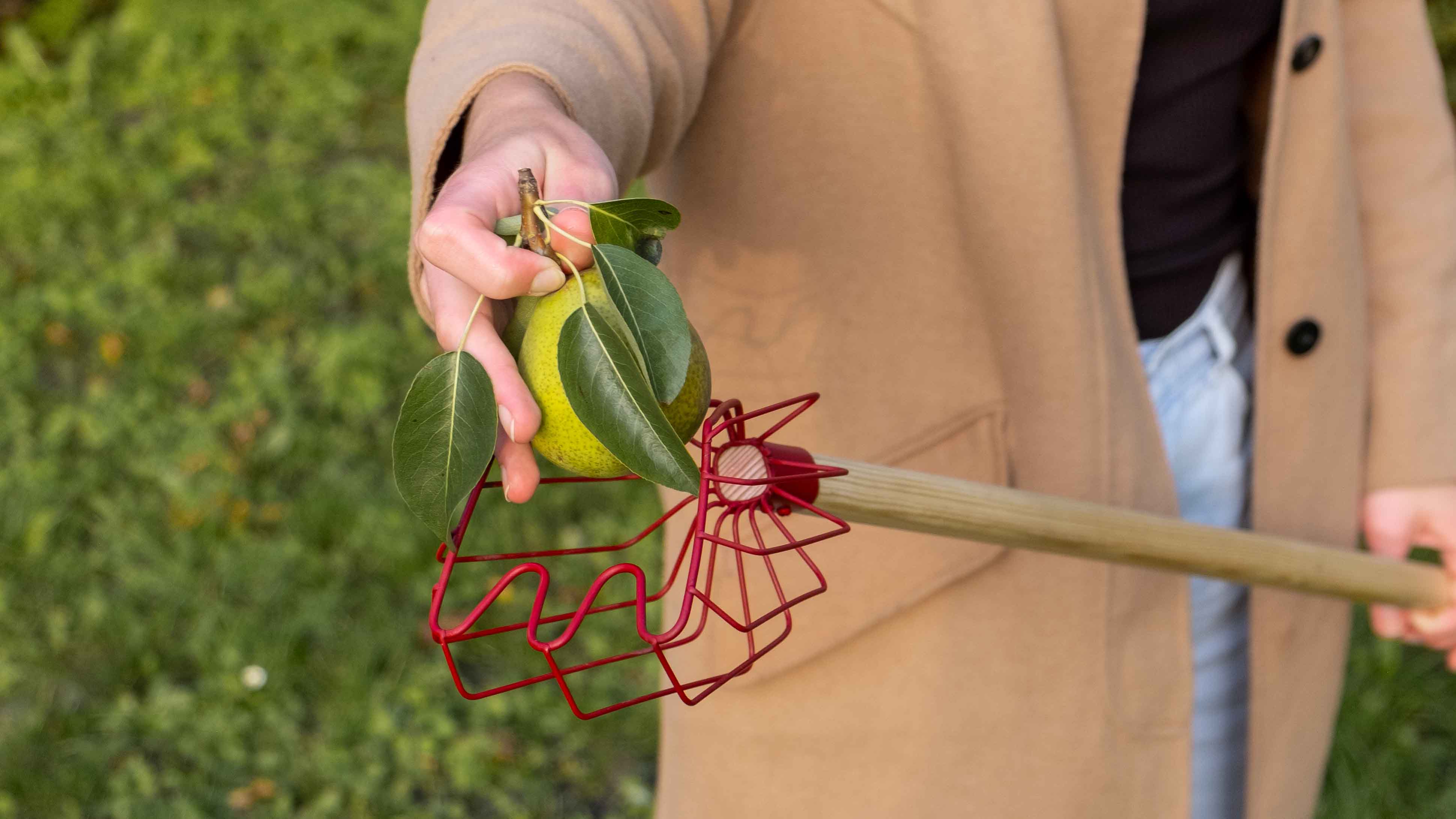 Tool for harvesting fruit from public trees, designed to reduce urban food waste.