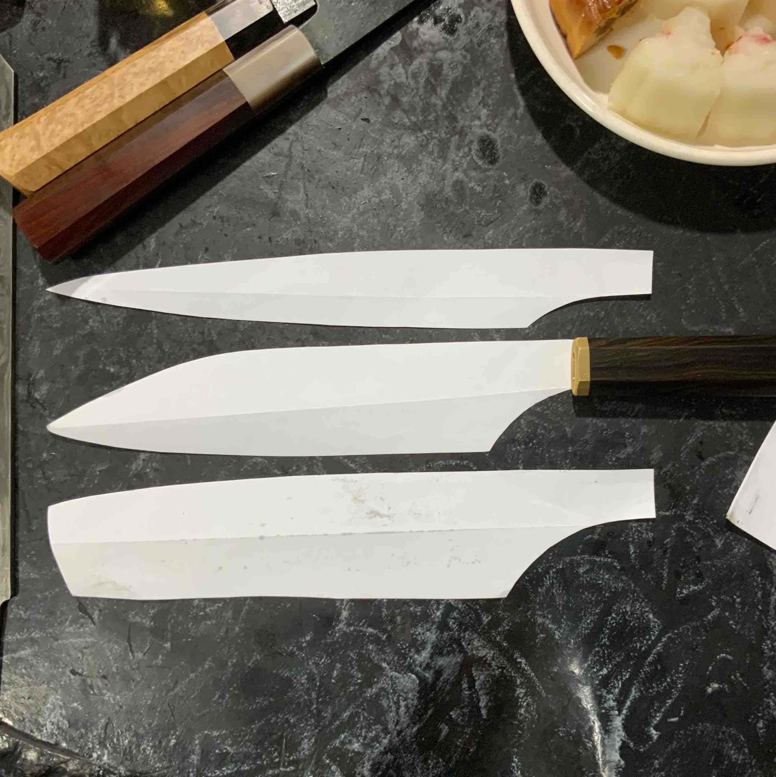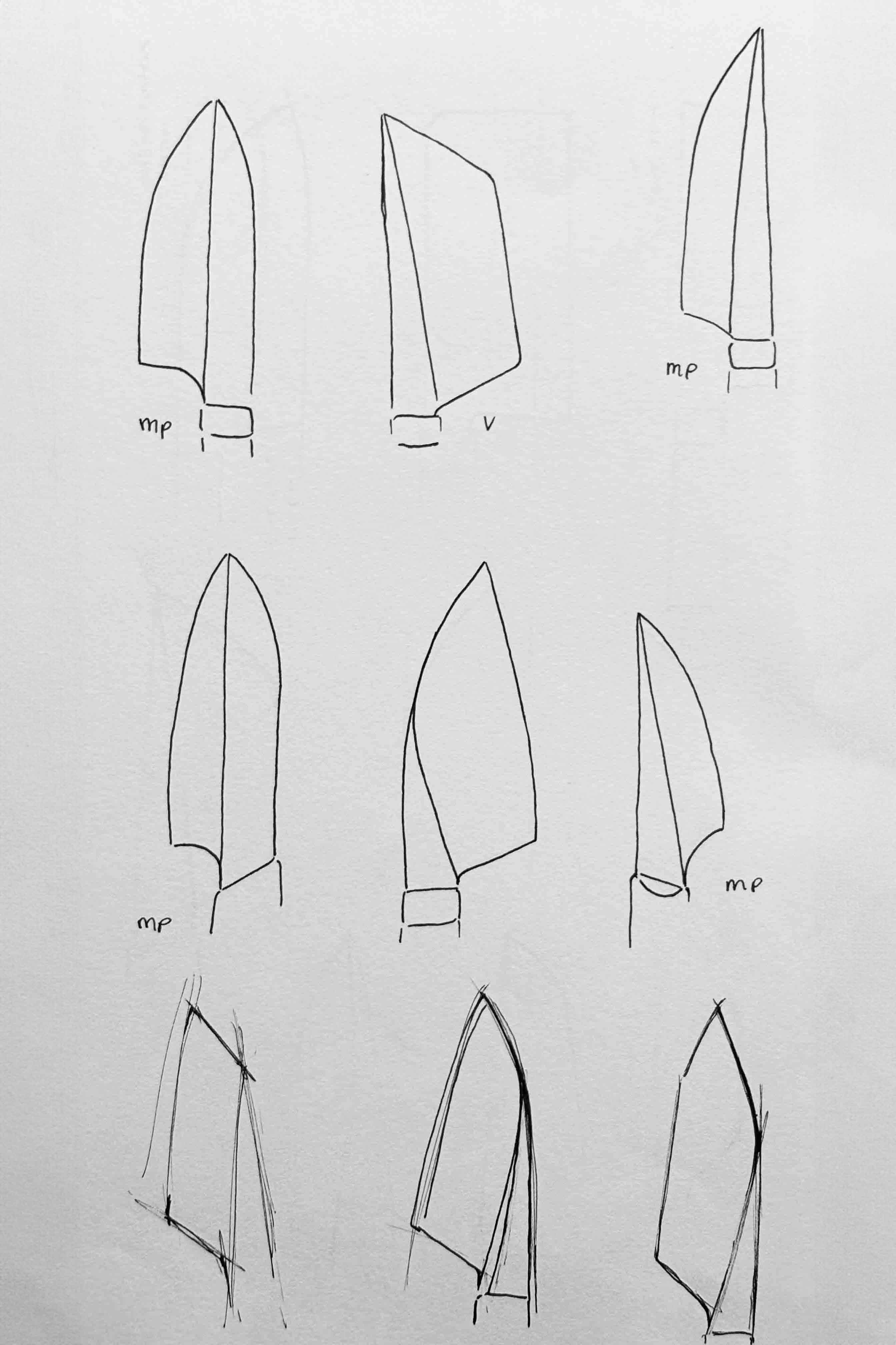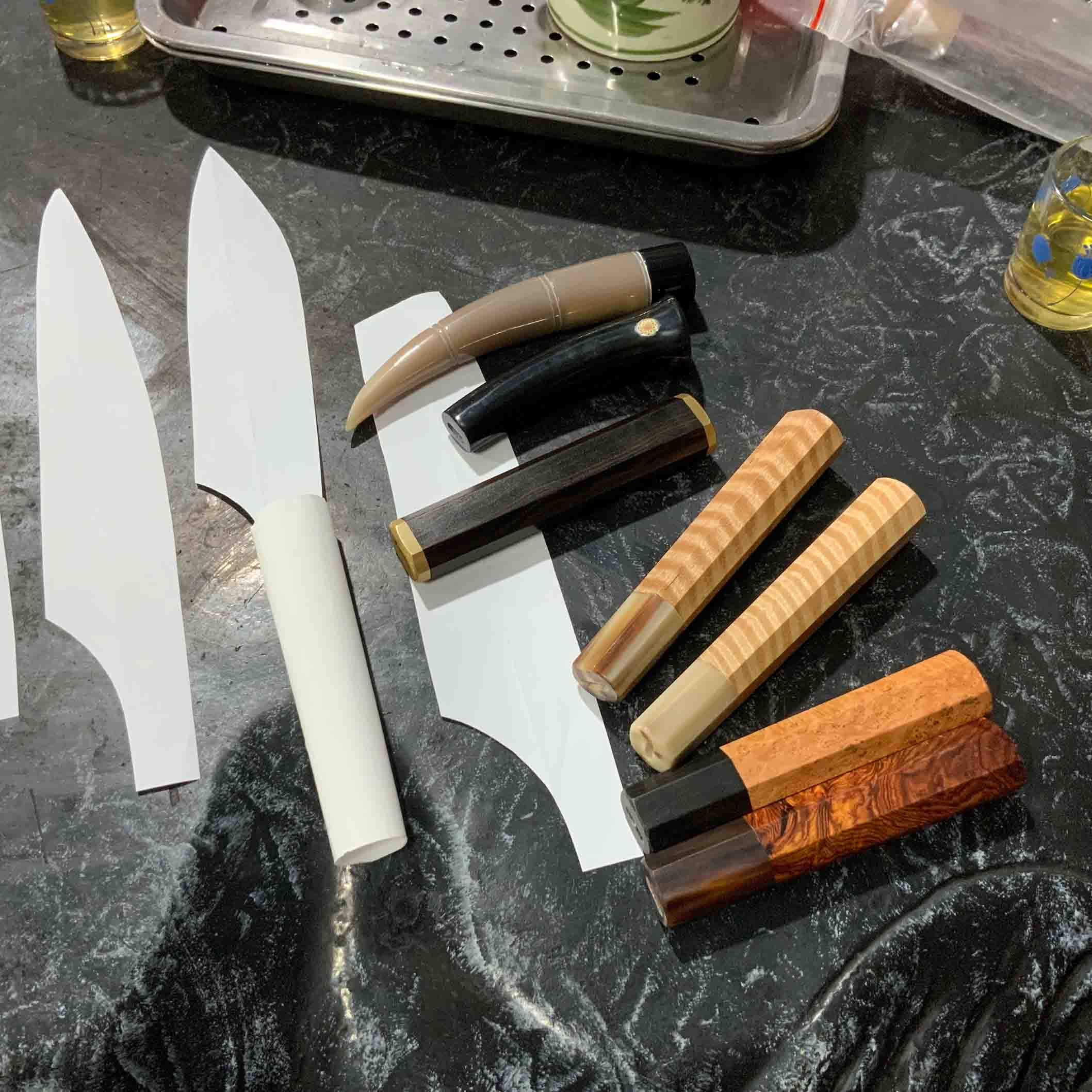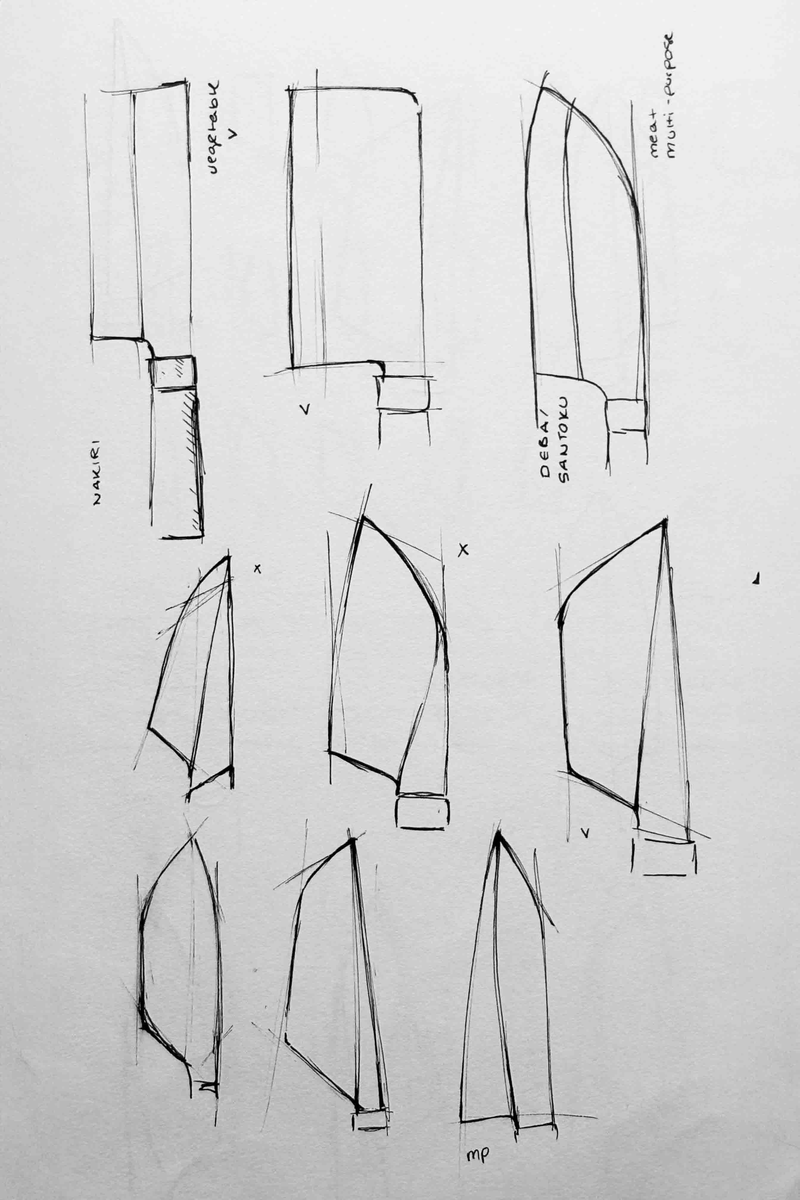 During this project, I learned how to design kitchen knives for different uses and collaborated closely with a knife producer from Hanoi, Vietnam. The task was to create a knife set suitable for the European market. Due to time constraints, only the blades could be custom-made based on my designs, while the handles were selected from the producer’s standard assortment. All blades are handmade.