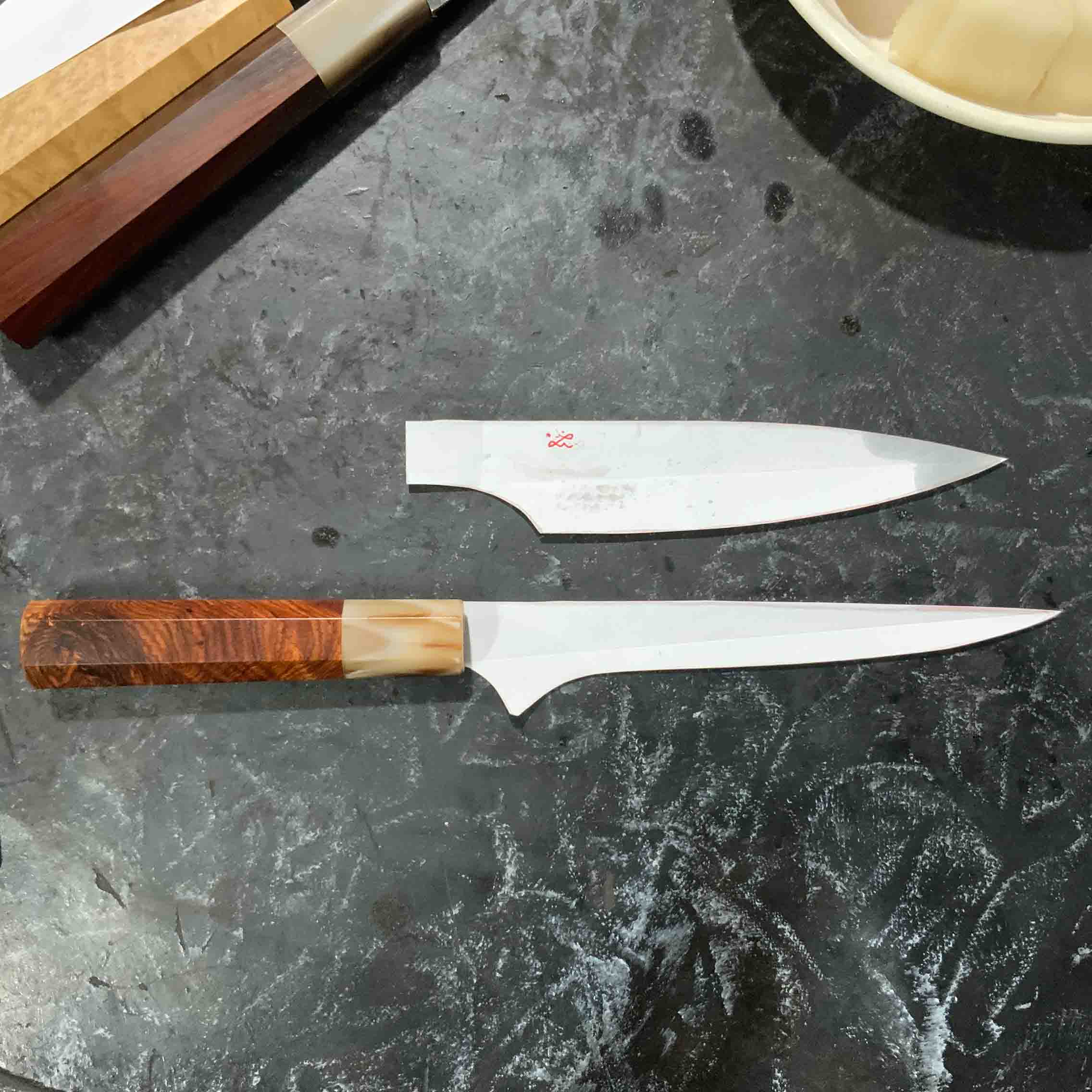 I visited the knife maker together with a translator. The workshop was small, and each piece was crafted by hand. He showed me his previous work, and together we explored what could realistically be produced within the short timeframe.