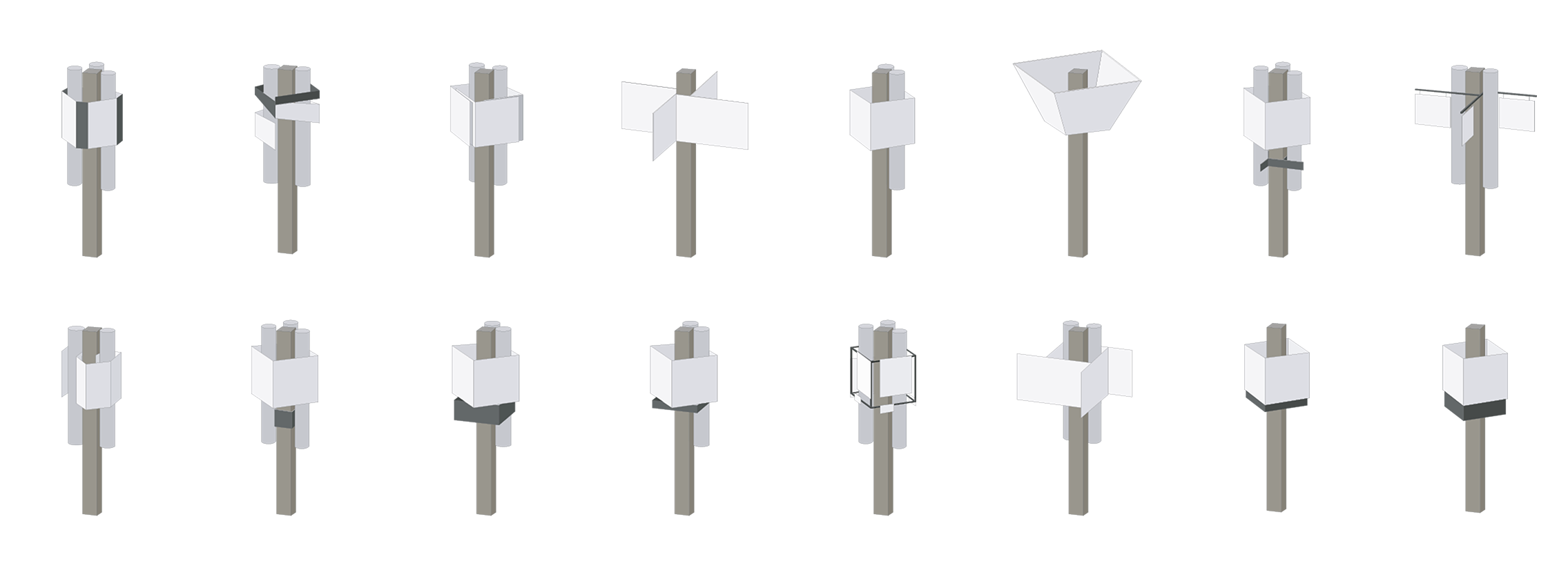 The cube emerged from testing geometric forms that could work at multiple scales. Its industrial aesthetic aligned with Wilo’s engineering identity. More importantly, the modular grid system allowed practical adaptation without losing visual coherence.